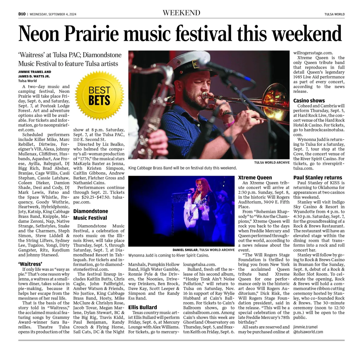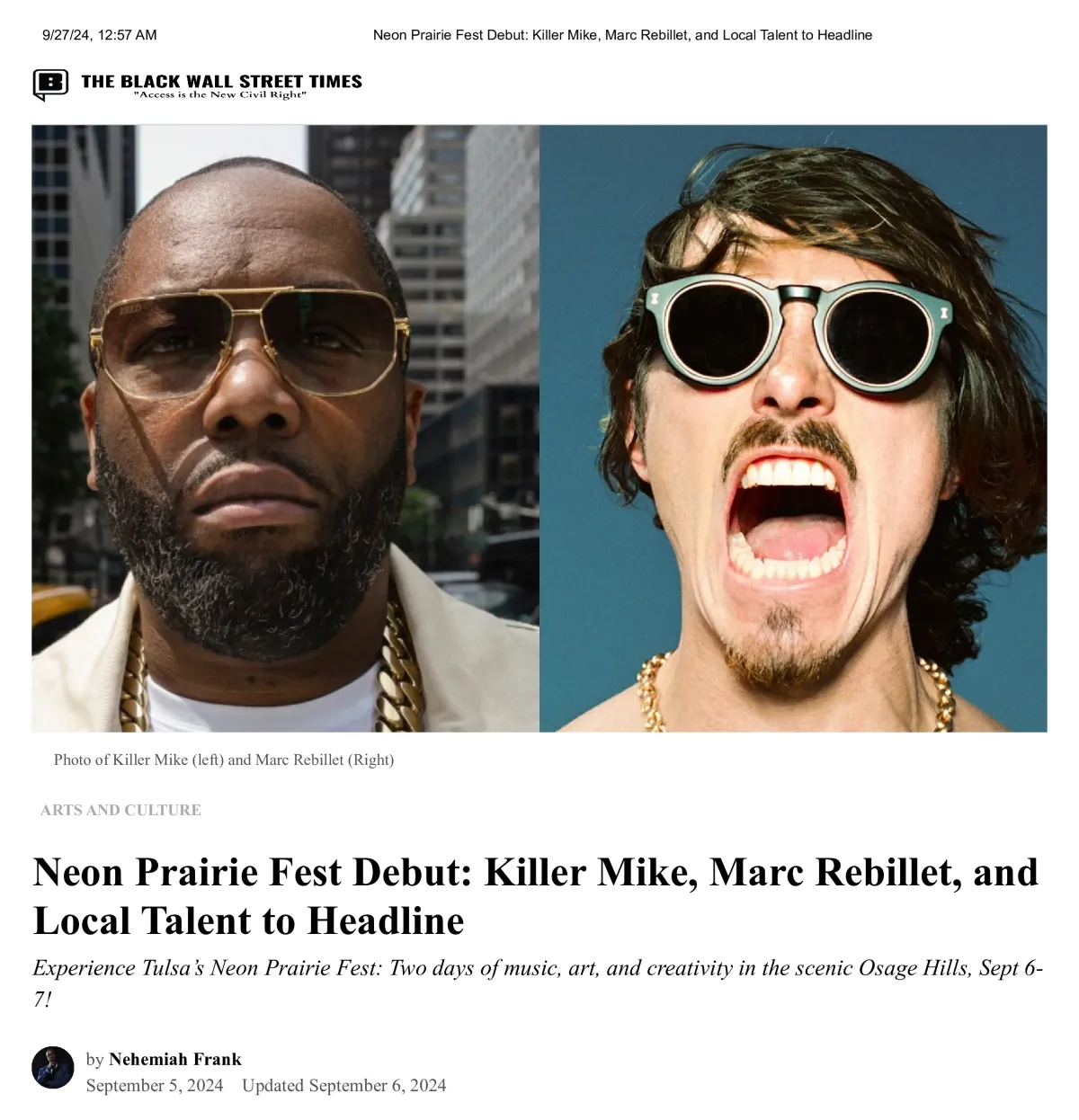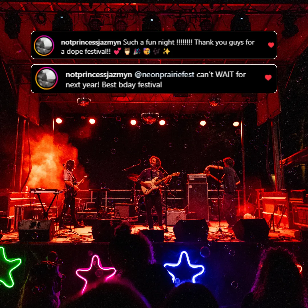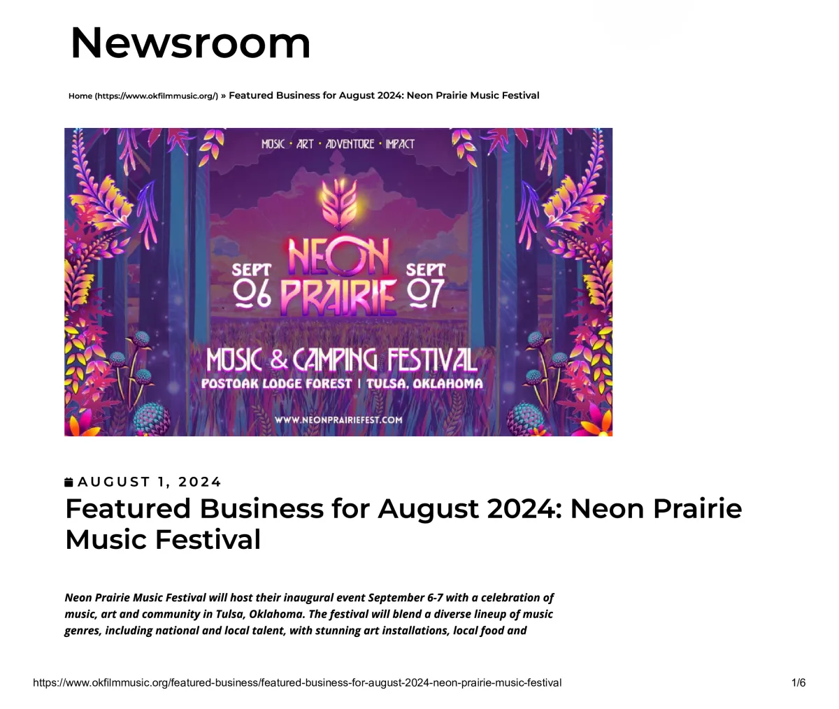 Neon Prairie is a landmark cultural project that's poised to be a top driver of economic growth, tourism, and job creation in Tulsa and the Midwest. It’s more than a festival—it’s a world-class experience designed to elevate the region’s creative economy and put Tulsa on the map. Your support fuels real impact by supporting local musicians, artists, and driving dollars into businesses and surrounding communities. By backing Neon Prairie, you’re leading this movement and a vision for our future that blends culture, community, and commerce.